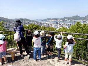 公園につくと「いい景色だね。」と友だちと達成感を共有していました。