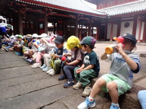 崇福寺さんに着くと、みんなでお茶を飲んで一休みしました。いつもより、お茶が美味しかったことでしょう。