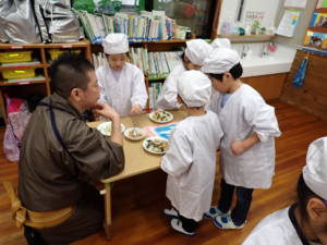 盛り付けが終わり、給食まで少し時間があったので、みんなで質問タイム!