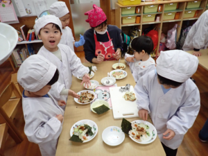 今年も、“小料理 藤緒”の伊藤さんに来ていただき、ちらし寿司づくりをしました。