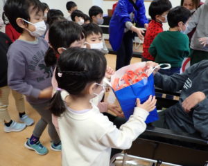 最後は「よいおとしを」の気持ちを込めて正月飾りをプレゼントしました。