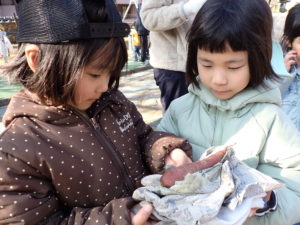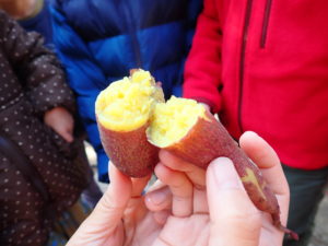 12月18日(金)はな・そら・あかぐみが芋掘り遠足で掘ってきたお芋を使って、やきいも大会をしました。
