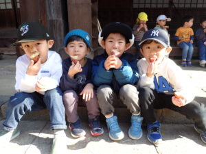 もちつき体験をしたはなぐみ・そらぐみは、餅丸め体験をしてみんなでいただきました。