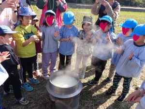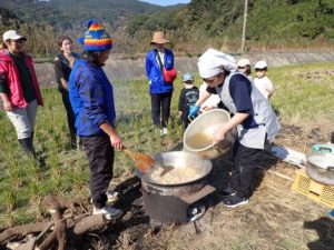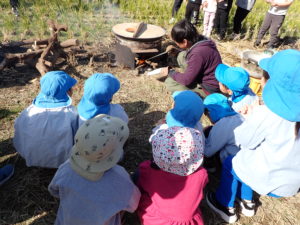 今年は、田植えをした田んぼで火をおこし米を炊きます。