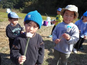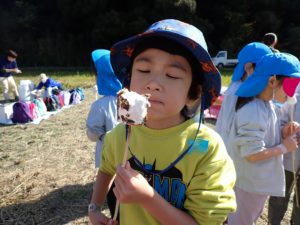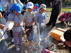 炊き上がりを待つ間に、植物でブレスレット作りや焼きマシュマロを楽しみました。