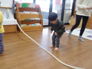 ぐにゃぐにゃ揺れる縄をジャンプ!!