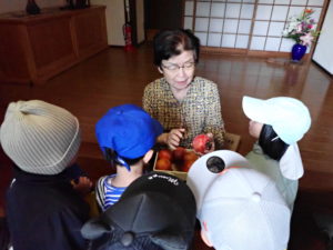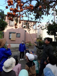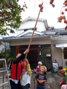 今年も卒園生のお宅に訪問して柿をとらせてもらいました。