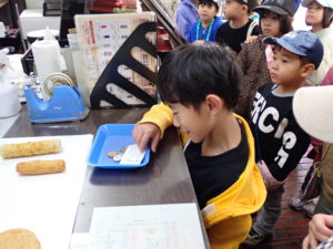 「やぶれ饅頭を、2個ください」「いか天2個と、棒天1本ください」「葉っぱが折れてないカブが欲しいです」「500円で足りますか?」など、お店の方との温かい関わりを通して楽しく買い物ができました。便利なキャッシュレス決済ではなく、現金を使って買い物ができたことも、お金の大切さを知ったり『500円で何個買えるかな?』と考えたりするきっかけになったのではないかと思います。