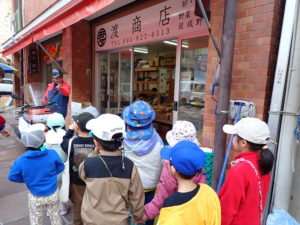 先日、お店屋さんごっこを数日後に控えた子どもたちと築町と賑町へ行きました。