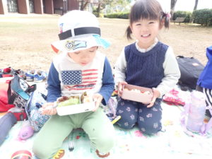 畑から近くの東公園に行き、みんなでお弁当を食べました!!