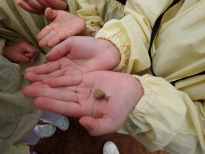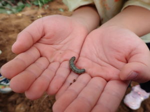 畑には、幼虫やかたつむりなどたくさんの虫もいました。