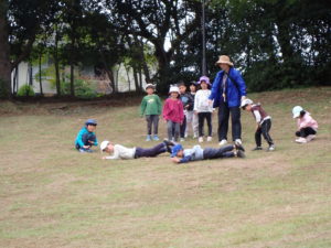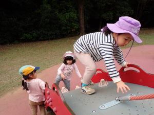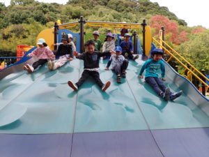 お弁当を食べた後は、遊具や芝生のスペースで身体を動かして遊びました。