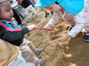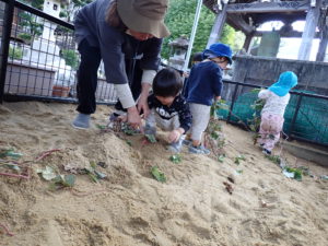 芋掘りごっこをしました! うんとこしょ どっこいしょ♪