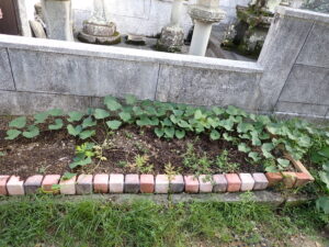 保育園の花壇の葉っぱは、土作りの時に給食室からもらった野菜くずから育ったのかもしれません。「12月頃に掘ってみるといいよ」と教えてもらいました。